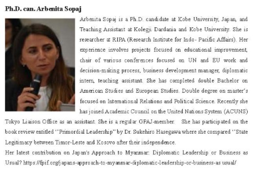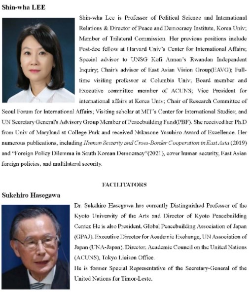 한국유엔체제학회 이신화 회장은 2021년 7월 3일(토) 20시에 Kyoto Peacebuilding Center와 Academic Council on the United Nations System Tokyo Liaison Office가 주관하는 “The Primacy of Peacebuilding: How Kosovo Crisis ended and its lesson to the post-Corona conflicts” 행사에 토론자로 참석합니다.